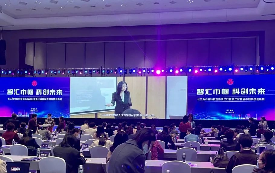 活動現場還舉辦了浙江省巾幗科技創新成果展,健培科技的巾幗科技創新產品??“啄醫生”輔助診斷機器人系列產品,作為科技創新項目13個代表之一進行現場展示。季紅麗向各位領導就“啄醫生”輔助診斷機器人的最新成果做了詳細匯報。該項目致力于面向國家人工智能醫療領域的發展需求,打造中國人自己的機器人醫生。“啄醫生”采用大數據、云計算、人工智能等新興前沿科技,能精準定位和分析病灶性質,預測疾病發展情況,自動生成結構化報告,并智能跟蹤隨訪數據,是醫生的好幫手。“啄醫生”創造性地構建了“防、診、治、管”全生命周期的人工智能輔助診斷及決策系統,為疾病的早期篩查、流行病的預警監測、慢性病的健康管理等提供服務,為推進行業數字化轉型以及“健康中國2030”行動賦能。