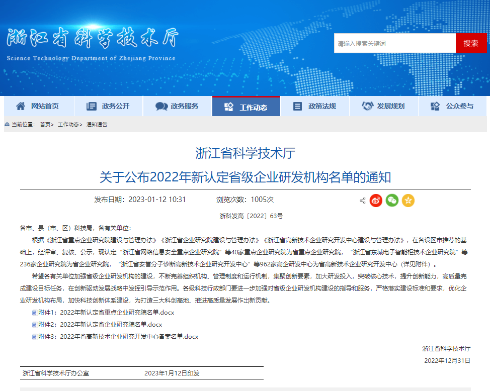 為進一步加快推動企業研發機構建設,“浙江省科學技術廳”組織開展了2022年省重點企業研究院、省企業研究院、省高新技術企業研究開發中心認定工作。在各市科技局推薦的基礎上,經評審、復核和公示,現認定“浙江省健培科技數字醫療企業研究院”為省級企業研究院。